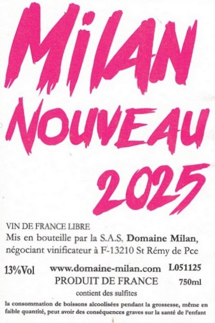 Domaine Milan Vin de France Milan Nouveau 2025