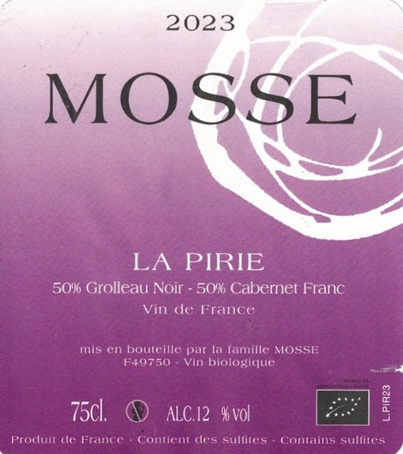 This one is a combination of Cabernet Franc (20%) picked from 45 year old vines grown on clay sitting on shale quite close to the Mosse vineyards. Muscat a Petit Grains (80%) picked from 15 year old vines grown on limestone clay soil in the department of Roussillon. Both grape varieties are managed organically in the respective vineyards.