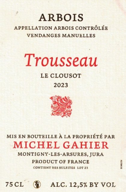 Michel Gahier Arbois Trousseau Le Clousot 2023